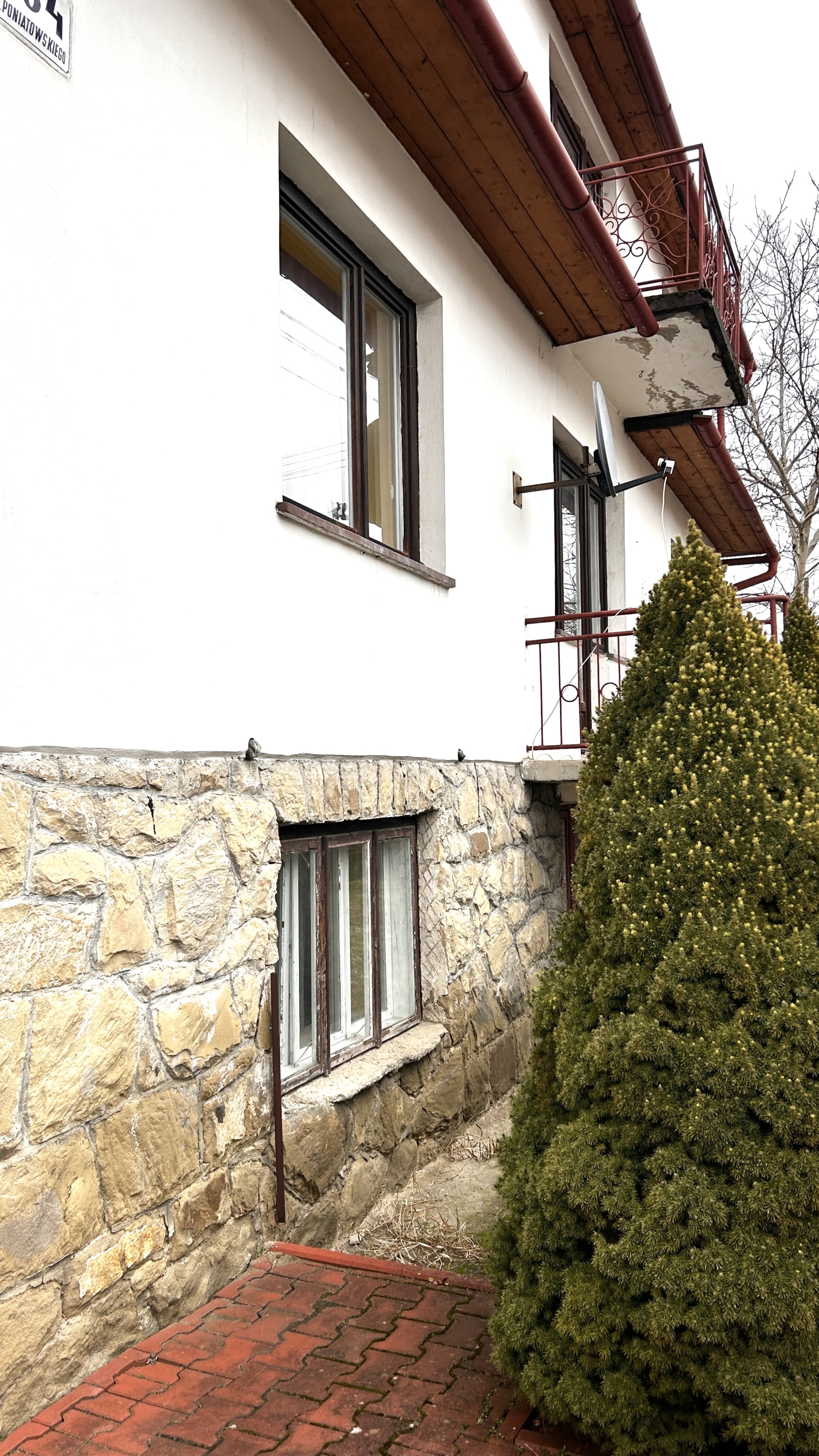 Budynek mieszkalny jednorodzinny, o tradycyjnej architekturze zachwyca retro detalami oraz solidną konstrukcją. Nieruchomość jest 3 kondygnacyjna o powierzchni użytkowej: 286,5 m.kw (część mieszkalna) w skład której wchodzą: sutenery, parter (3 pokoje, kuchnia, łazienka, wc oraz spiżarnia ), I piętro ( 4 niezależne pokoje, kuchnia, łazienka, wc oraz dodatkowe pomieszczenie), natomiast powierzchnia zabudowy to 104 m.kw. Do budynku mieszkalnego przylegają bezpośrednio 2 budynki gospodarcze z garażem. Teren ogrodzony z siatki, brama wjazdowa metalowa.